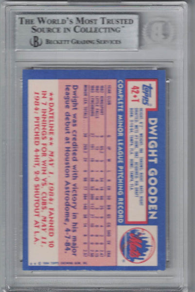 Dwight Gooden Signed New York Mets 1984 Topps Traded Card BAS ROY Slab 28520 The number in the listing title is just an inventory sku for our records and is not the authentication number. This is a 1984 Topps Traded #42T trading card that was personally autographed by Dwight Gooden with 84 ROY inscription. This was slabbed by Beckett Authentication Services (BAS) includes a certificate of authenticity from Denver Autographs.
