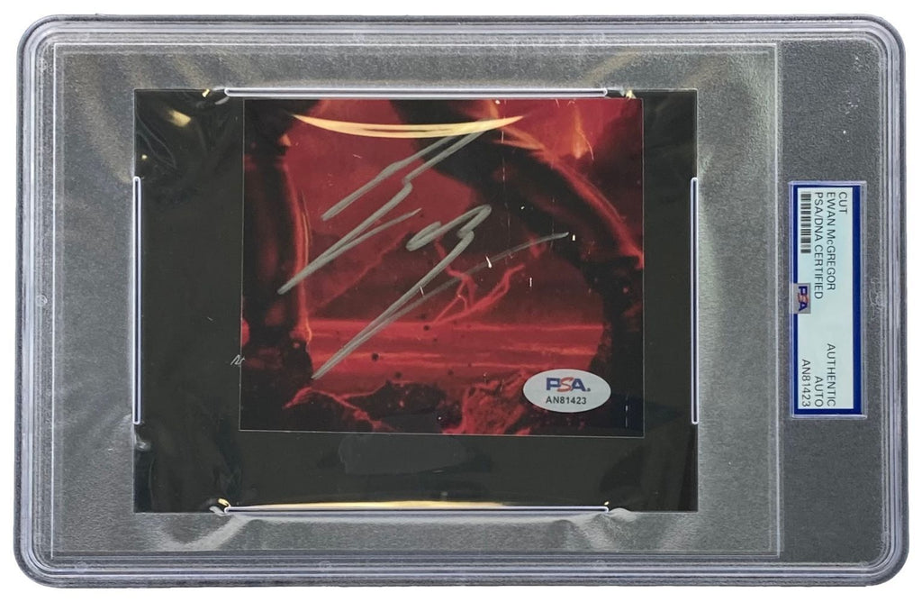 Featured is an Ewan McGregor signed cut signature. This cut has been hand signed by McGregor and has been authenticated and encapsulated by PSA. This cut would make a great addition to any sports memorabilia collection!. SPECIFICATIONS Autographed By: Ewan McGregor Team: Sport: Authentication: Professional Sports Authenticator (PSA)