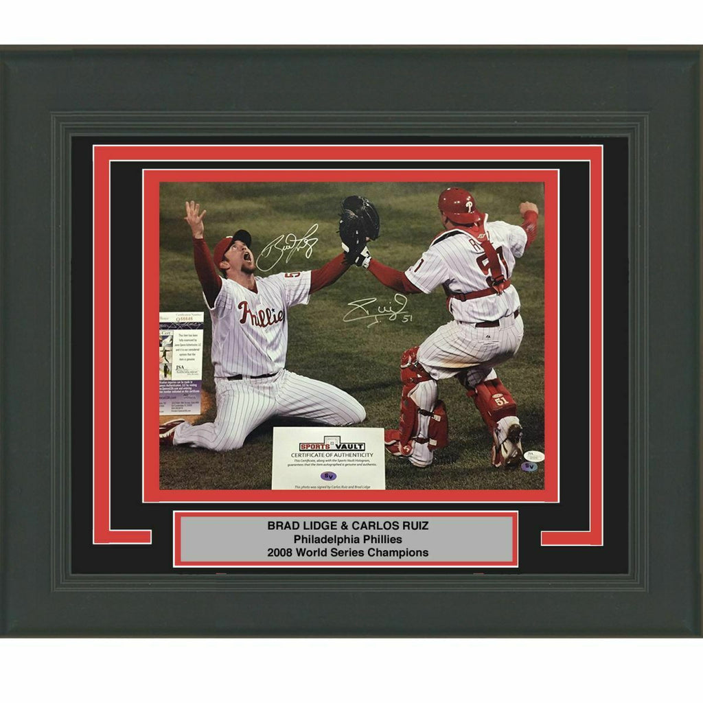 FRAMED Autographed/Signed BRAD LIDGE CARLOS RUIZ 2008 WS 16x20 Photo JSA COA The item is professionally framed & matted and is ready to be hung in your man cave! NOTE: COA card, if applicable, will be mounted on the back of the frame.