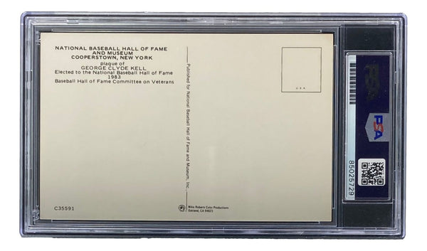 Featured is a George Kell (Detroit Tigers) signed 4x6 Hall Of Fame plaque card. This card has been hand signed by Kell and has been authenticated and encapsulated by PSA/DNA. This card would make a great addition to any sports memorabilia collection!. SPECIFICATIONS Autographed By: George Kell Team: Detroit Tigers Sport: Baseball Authentication: Professional Sports Authenticator (PSA)