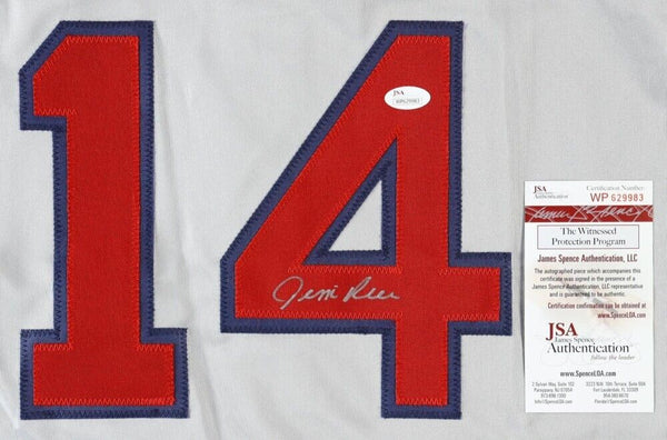 This autographed jersey has been personally hand-signed by Jim Rice of the Boston Red Sox.This autograph is certified by James Spence Authentication's (JSA) Witnessed Protection Program. That means that a JSA representative was present when this item was signed. It comes with the numbered hologram and matching Certificate of Authenticity.Custom on-field style jerseys are a more affordable option for autograph seekers. These jerseys do not have any brand name or tags and are made in the Philippines. They feature stitched on names and numbers and are made to look very similar to the on-field jerseys that the players wear. These custom jerseys are very commonly used in the memorabilia industry.