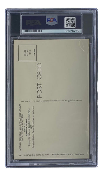 Featured is a Joe Sewell (Cleveland) signed 4x6 Hall Of Fame plaque card. This card has been hand signed by Sewell and has been authenticated and encapsulated by PSA/DNA. This card would make a great addition to any sports memorabilia collection!. SPECIFICATIONS Autographed By: Joe Sewell Team: Cleveland Sport: Baseball Authentication: Professional Sports Authenticator (PSA)