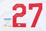 Custom on-field style jersey. Everything is sewn on, size XL. Hand-signed and inscribed by Jose Rijo.The lot / autograph(s) includes an official PSA/DNA hologram and matching COA for authenticity purposes. The signing of this item was witnessed by PSA.Authentication: PSA COA Check out all the items in our Friendly Confines Collectibles store, Thanks for looking.