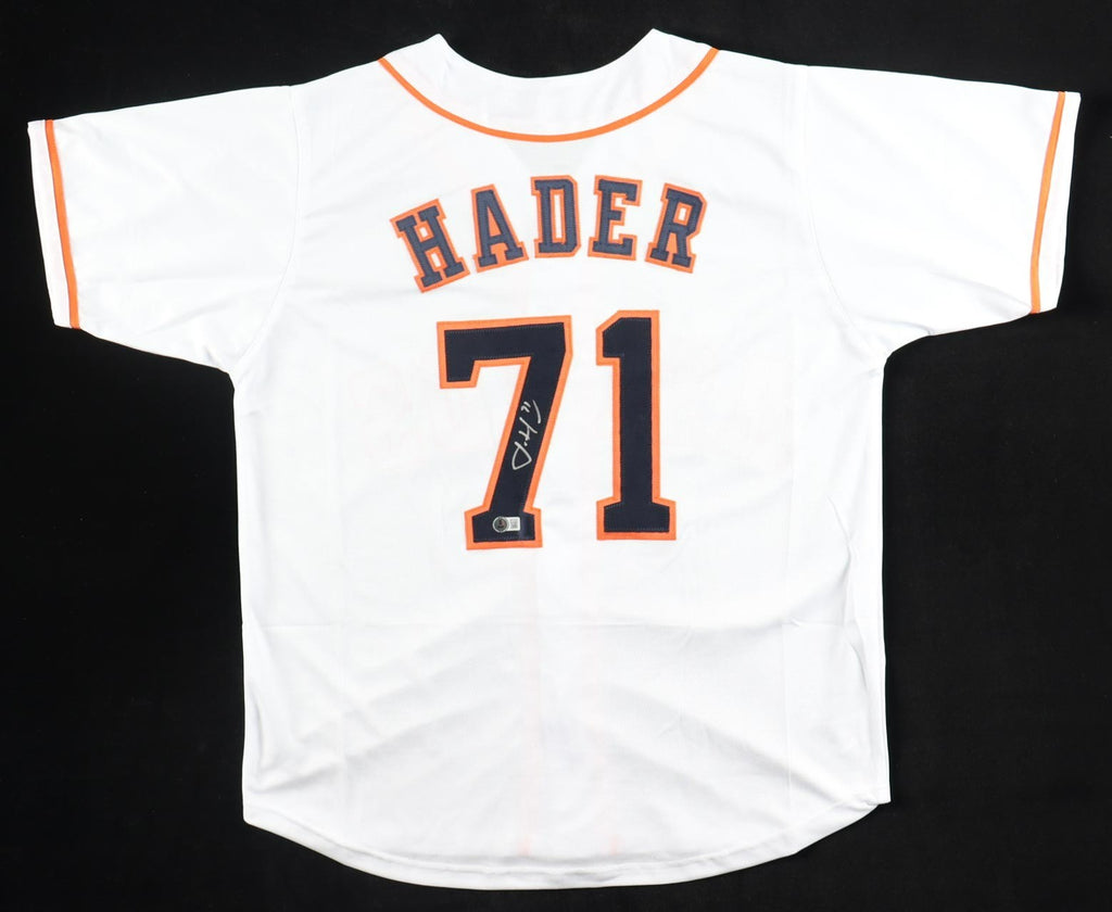 Custom jersey with everything sewn on, size XL. Hand-signed and inscribed "Haderade" by Josh Hader.The autograph includes an official Beckett Authentication Services serially numbered hologram and QR Code card for authenticity purposes. The signing of this item was witnessed by Beckett.Authentication: Beckett Hologram with Scannable QR Code card