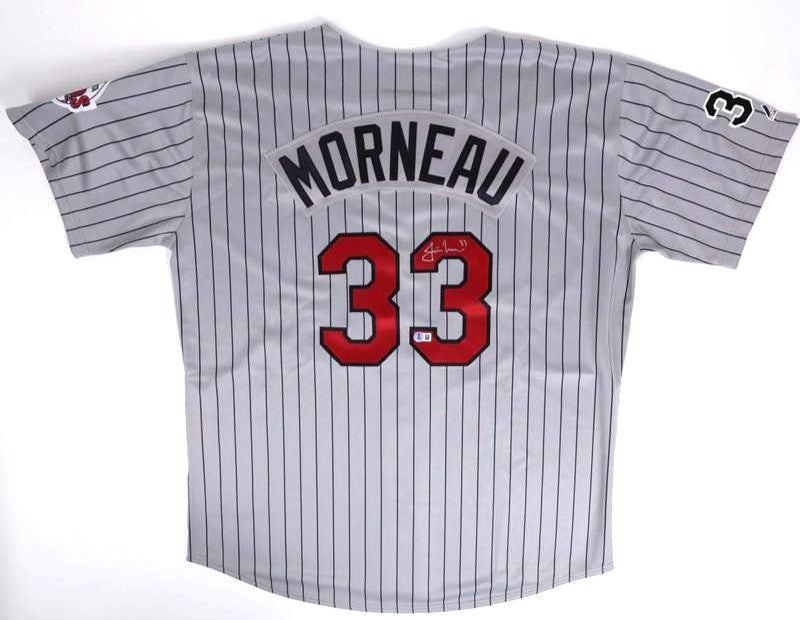 Majestic jersey. Everything is sewn on, size XL. Hand-signed Justin Morneau.The autograph includes an official Beckett Authentication Services serially numbered scannable hologram and QR Code card for authenticity purposes. The signing of this item was witnessed by Beckett.Authentication: Beckett Scannable Hologram with QR Code card