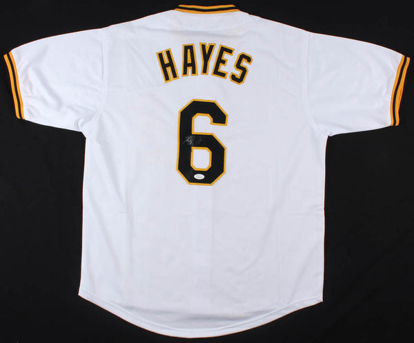Custom on-field style jersey. Everything is sewn on, size XL. Hand-signed in silver paint pen by Ke'Bryan Hayes. The lot / autograph(s) includes an official James Spence Authentication (JSA) hologram and matching COA for authenticity purposes. The signing of this item was witnessed by JSA.Authentication: JSA COA