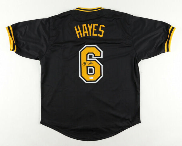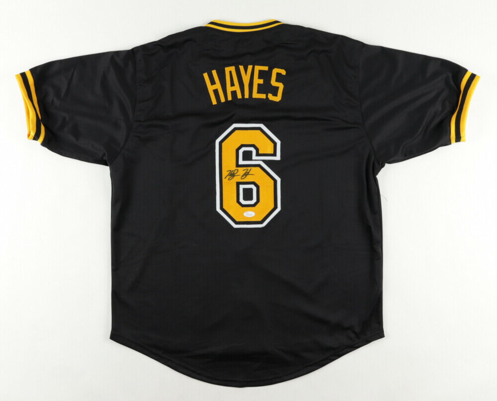 Custom on-field style jersey. Everything is sewn on, size XL. Hand-signed in Black Sharpie pen by Ke'Bryan Hayes. The lot / autograph(s) includes an official James Spence Authentication (JSA) hologram and matching COA for authenticity purposes. The signing of this item was witnessed by JSA.Authentication: JSA COA