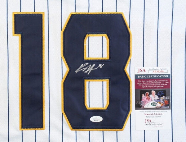 Custom on-field Nike style jersey. Everything sewn on, size adult XL. Hand-signed by Keston Hiura.The lot / autograph(s) includes an official James Spence Authentication (JSA) hologram and matching COA for authenticity purposes.Authentication: JSA COA