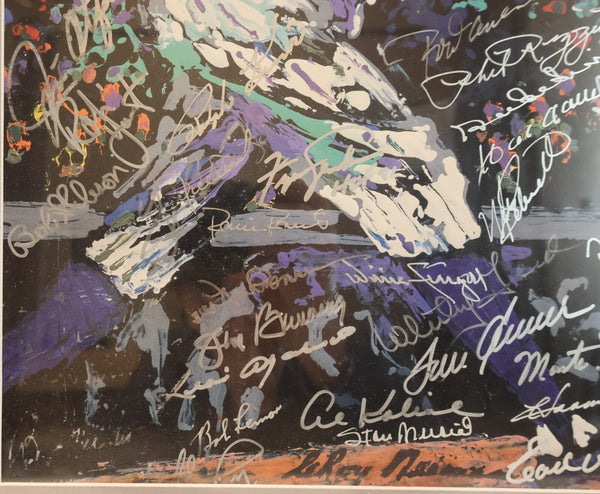 Experience the history and legacy of Babe Ruth with this stunning 11x14 print by acclaimed artist Leroy Neiman. Authenticated by James Spence Authentication, this print comes beautifully framed at 19.5"x24" with the Hall of Famers' signatures, including legends like Hank Aaron, Sandy Koufax, and Reggie Jackson, in silver metallic paint pen. Own a piece of baseball history today! More than 30 signatures in total including HOF'ers: Pee Wee Reese, Wade Boggs, George Brett, Frank Robinson, Eddie Mathews, Warren Spahn, Al Kaline, Fergie Jenkins, Harmon Killebrew, Sandy Koufax, Reggie Jackson, Bobby Doerr, Rod Carew, Tom Seaver, and Stan Musial.