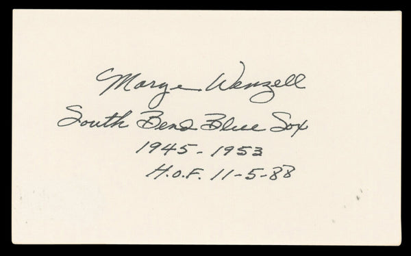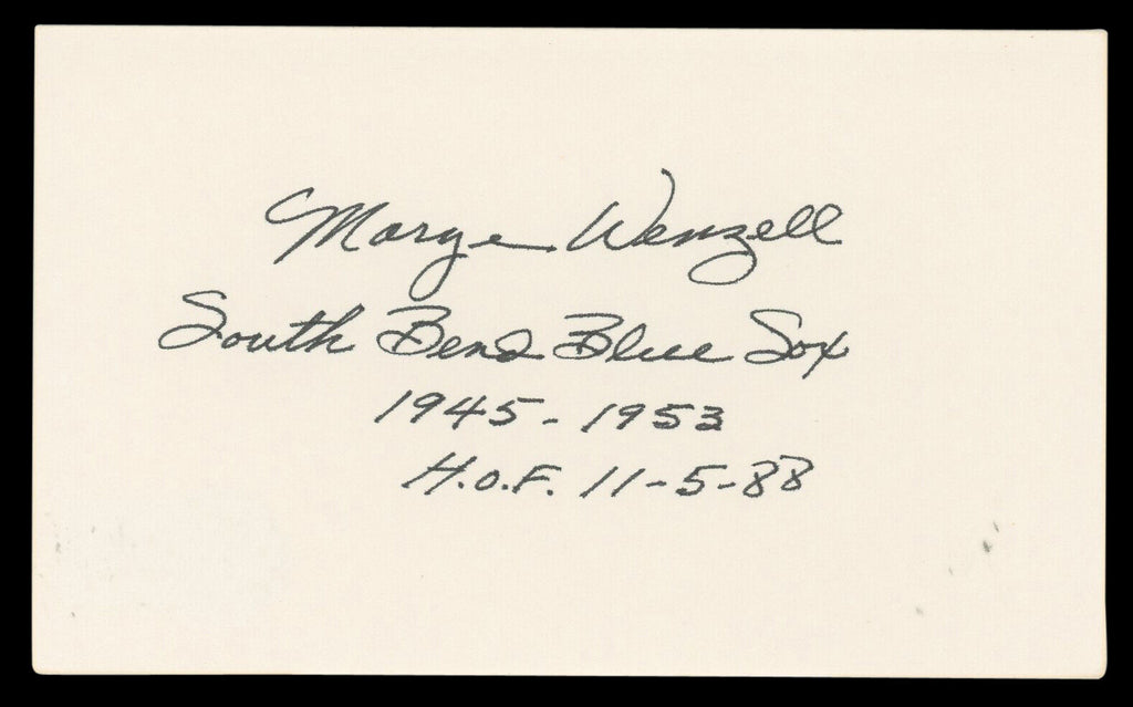 This Autographed 3x5 Index Card with the inscription of "South Bend Blue Sox 1945-1953 HOF 11-5-88" has been Personally Signed by Margaret Wenzell. This item is 100% Authentic to include a hologram by Beckett Authentication Services. This item will come with an affixed Beckett Authentication Services (BAS) authentication sticker, which includes a scannable QR code to verify authenticity. Please note that Beckett no longer provides serial-numbered COA cards, and the attached BAS sticker will serve as the complete authentication for this item. The authenticity can be verified on Beckett Authentication Services website.