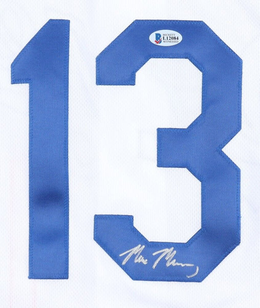 Teamwork custom on-field style jersey with everything sewn on, size Adult XL. Hand-signed by Max Muncy (Oakland A's, Los Angeles Dodgers).The autograph includes an official Beckett Authentication Services serially-numbered hologram and matching COA for authenticity purposes. The signing of this item was witnessed by Beckett.Authentication: Beckett COA