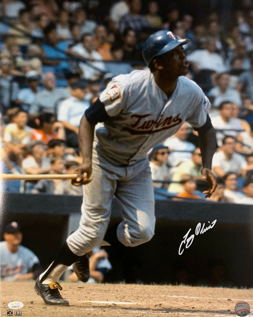 A 16x20 hand signed color photo of former Minnesota Twins Outfielder and World Series Champ TONY OLIVA. The signature is in White paint pen. This would make a great addition to any Twins collection. This photo was signed at a private signing with us. This item is guaranteed to be 100% authentic and will include a COA from JSA authentication.