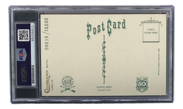 Featured is a Monte Irvin New York Giants signed Perez-Steele postcard. This card has been hand signed by Irvin and has been authenticated and encapsulated by PSA, receiving a Gem MT 10 autograph grade. This card would make a great addition to any sports memorabilia collection!. SPECIFICATIONS Autographed By: Monte Irvin Team: New York Giants Sport: Baseball Authentication: Professional Sports Authenticator (PSA)