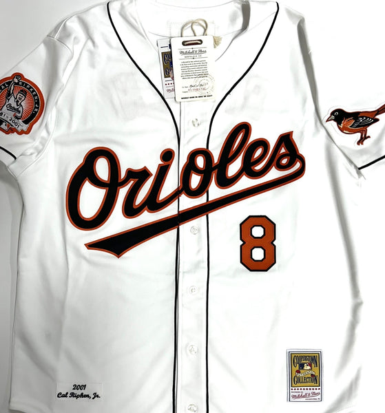 autographed Official Mitchell & Ness Jersey of Baltimore Orioles Hall of Famer CAL RIPKEN JR.. This jersey is signed with Silver Paint Pen. This jersey is size Extra Large with all letters and numbers sewn in. This item was signed at a private signing with us and would make a great addition to any Ripken Jr. or Orioles collection. This autograph is guaranteed to be 100% authentic and will include a COA hologram from Fanatics authentication.