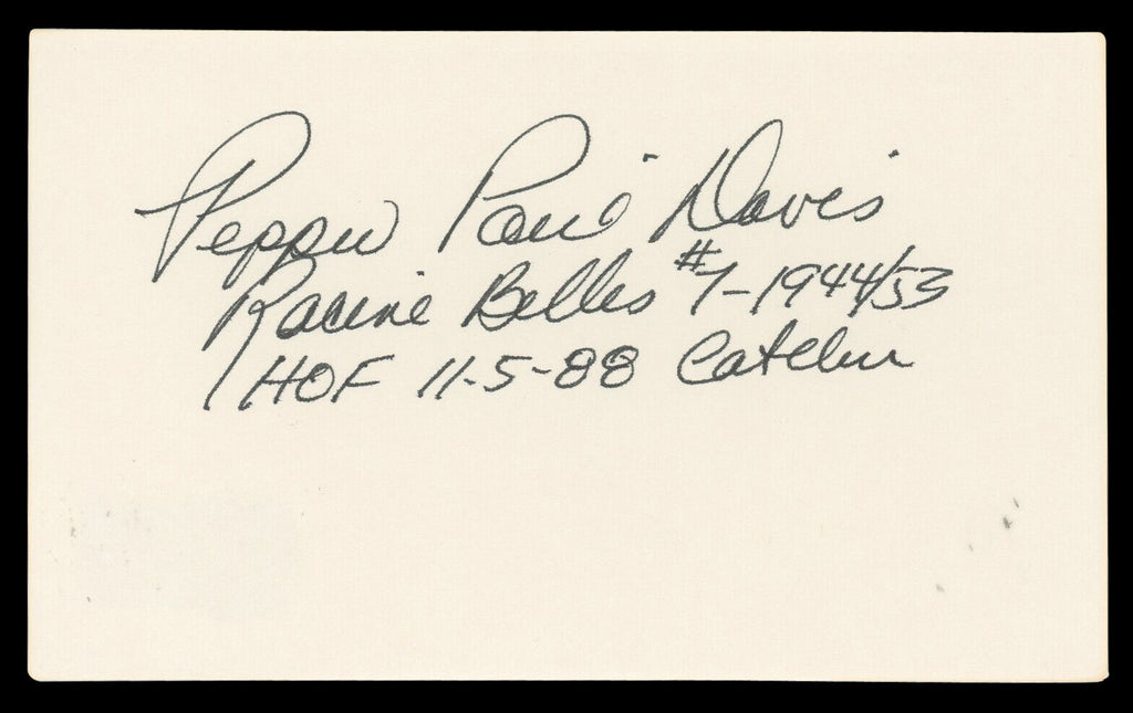 Pepper Paire Davis "HOF 11-5-88" Authentic Signed 3x5 Index Card BAS #BN35221