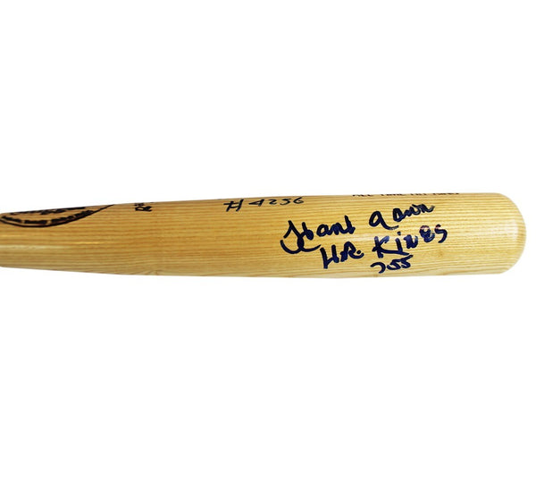 A Louisville Slugger Blonde MLB Bat Hand Signed by Pete Rose. The item and signature are in excellent condition. In addition to signing his name, Pete also inscribed ""Hit King #4256" & Hank inscribed "HR Kings 755"" on the item. Pete is a 17x All-Star, 3x World Series Champion, 1973 National League Most Valuable Player, 1975 World Series Most Valuable Player, 3x National League Batting Champion, 2x Gold Glove Award winner and 1963 National League Rookie of the Year. Hank is a 25x All Star, 1957 World Series Champion, and 3X Gold Glove Winner. AUTHENTICATION: The item is accompanied by a Beckett Letter of Authenticity