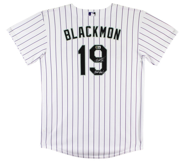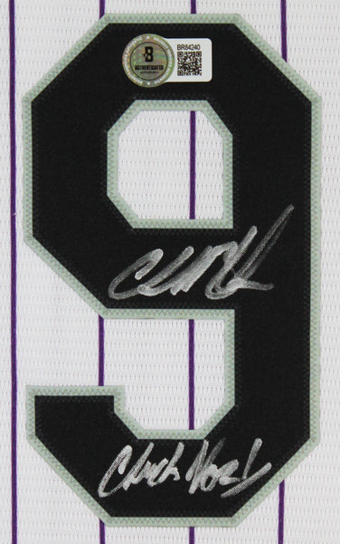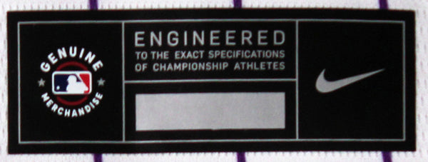 This Autographed White Pinstripe Nike Jersey with the inscription of "Chuck Nazty" has been Personally Signed by Charlie Blackmon of the Colorado Rockies. This item is 100% Authentic to include a hologram by Beckett Authentication Services. This item will come with an affixed Beckett Authentication Services (BAS) authentication sticker, which includes a scannable QR code to verify authenticity. Please note that Beckett no longer provides serial-numbered COA cards, and the attached BAS sticker will serve as the complete authentication for this item. The authenticity can be verified on Beckett Authentication Services website. This is a X-Large sized Jersey.