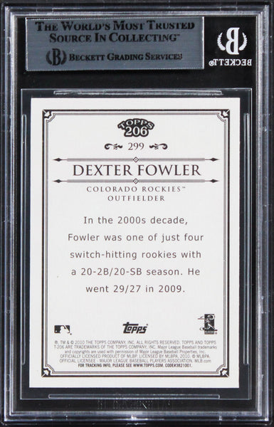 This Autographed 2010 Topps 206 #299 Card has been Personally Signed by Dexter Fowler of the Colorado Rockies. This item is 100% Authentic, it comes slabbed and authenticated by Beckett Authentication Services. The authenticity can be verified on Beckett Authentication Services website.