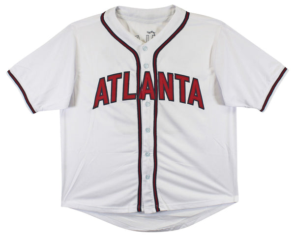 This Autographed White Pro Style Jersey has been Personally Signed by Ronald Acuna Jr. of the Atlanta Braves. This item is 100% Authentic to include a Certificate of Authenticity (COA) / hologram by JSA. We conducted an autograph signing with Ronald Acuna Jr. where multiples of the same item were signed. While the photographs are representative of this item, the size, placement and strength of the signature may vary. Each item is hand signed, therefore, each autograph is unique. This item can be verified through JSA. This is a X-Large sized, non-branded, custom-stitched Jersey.