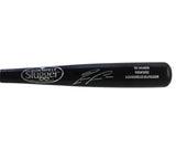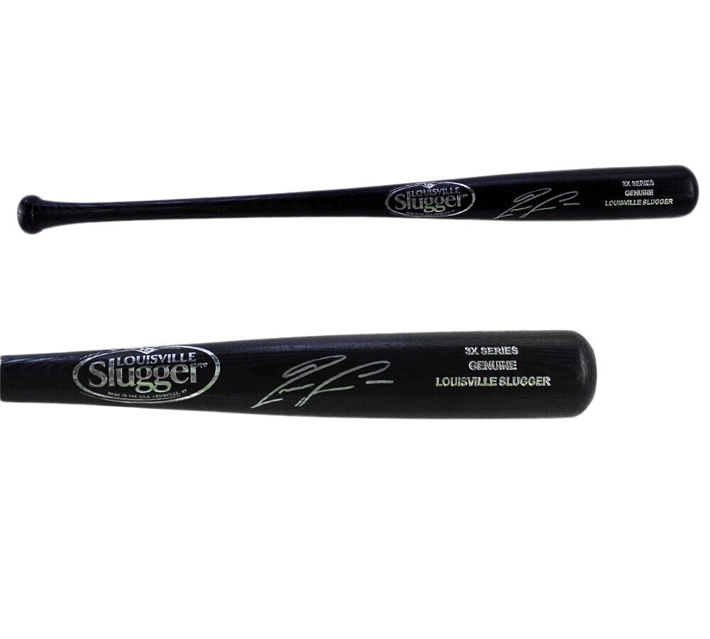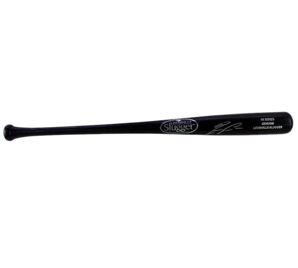 An Atlanta Braves Louisville Slugger 3x Series Black MLB Bat hand signed by Ronald Acuna Jr. The item and signature are in excellent condition. Ronald is a professional baseball player who plays outfield. He won the National League Rookie of the Year award and the Silver Slugger award in 2018. AUTHENTICATION: The item is accompanied by a Beckett Certificate of Authenticity - Beckett Serial Numbered & Databased Holograms