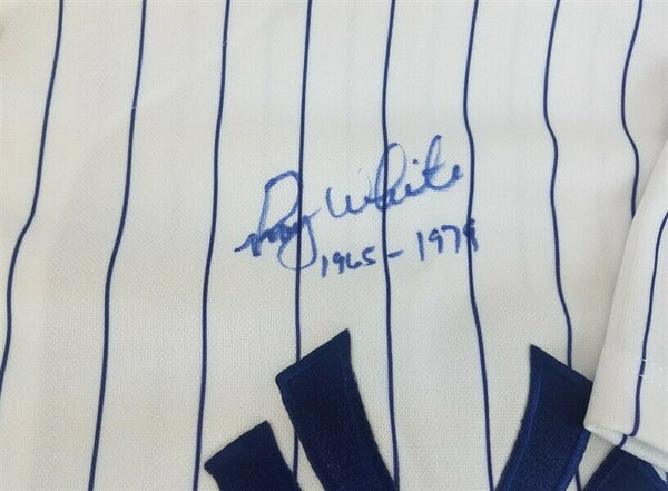 This autographed Russell Athletic jersey has been personally hand-signed by Roy White of the New York Yankees. White added the inscription "1965-1979" along with his signature. This autograph is certified by James Spence Authentication (JSA). It comes with the numbered hologram and matching Certificate of Authenticity.** Please note, there are some stain marks on the jersey. Please see all photos.