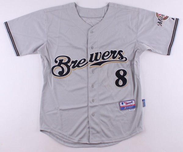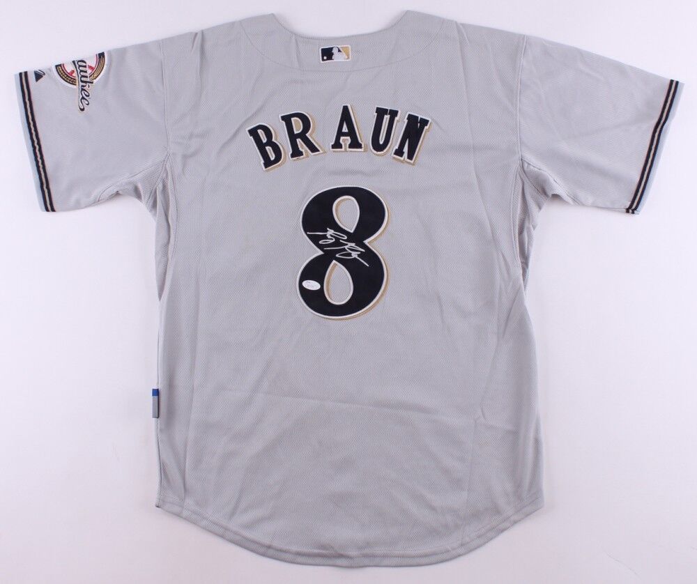 Majestic Authentic Collection on-field style jersey. Everything is sewn on, size 50. Hand-signed in white paint pen by Ryan Braun. The lot / autograph(s) includes an official James Spence Authentication (JSA) hologram and matching COA for authenticity purposes.Authentication: JSA COA