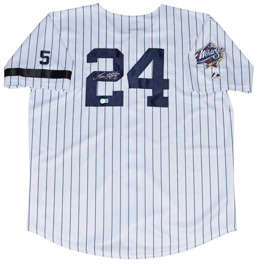 Tino Martinez, former All-Star first baseman for the New York Yankees, has hand signed this Yankees Majestic jersey with the 1999 World Series patch. Jersey is new with tags attached and everything is sewn-on. This item is authenticated by Beckett Authentication Services and was signed in the presence of one of their representatives. Their tamper-evident hologram featuring a QR code and serial number is on the item. The authenticity can be verified online by entering the serial number or scanning the QR code.Item pictured may not be the exact item you will receive. It will be similar quality, and we guarantee your satisfaction.