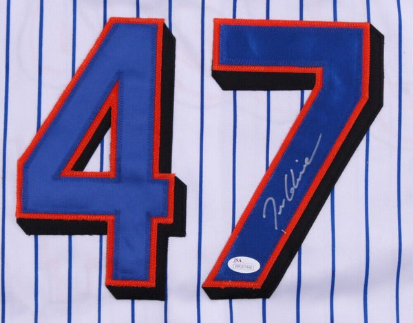 Custom on-field style jersey. Everything is sewn on, size XL. Hand-signed in silver felt-tip pen by Tom Glavine (Atlanta Braves, New York Mets, HOF). The autograph includes an official James Spence Authentication (JSA) hologram and matching COA for authenticity purposes. The signing of this item was witnessed by JSA.Authentication: JSA COA Shop our ebay store / Confines Collectibles for thousands of different autographed jerseys