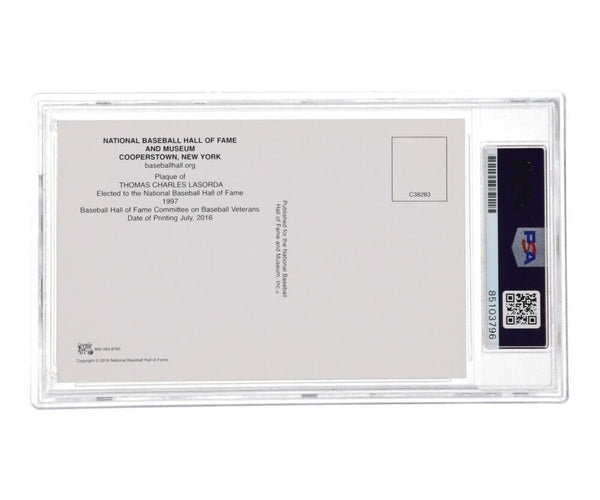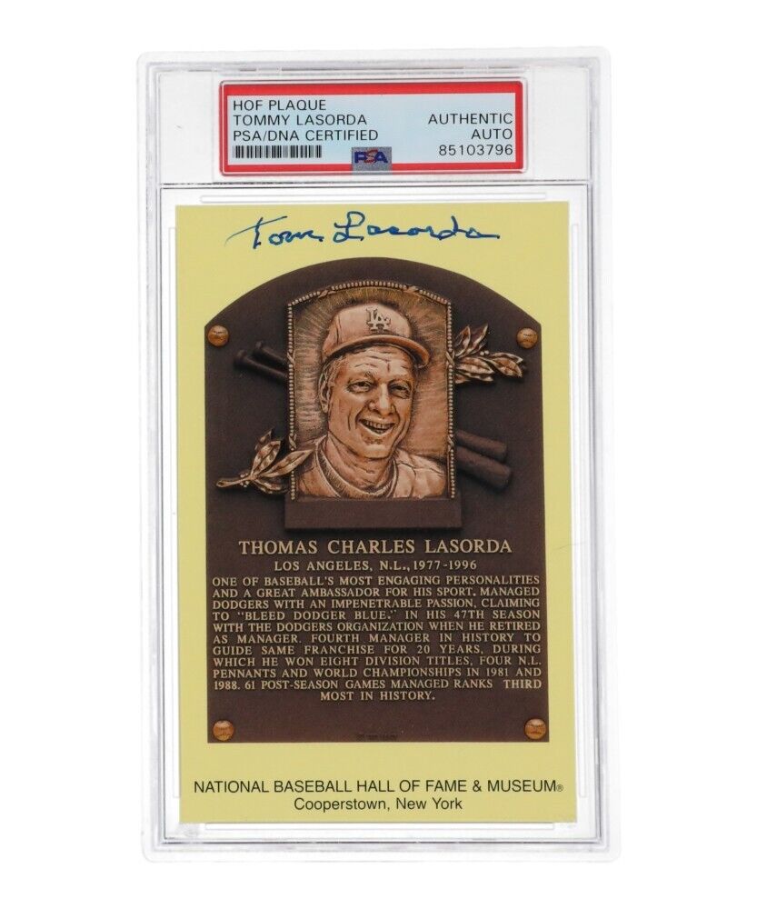 National Baseball Hall Of Fame Postcard has been hand-signed by Tommy Lasorda (D. 2021, Los Angeles Dodgers, HOF).The autograph(s) has been authenticated and encapsulated by PSA/DNA for authenticity purposes.Authentication: PSA Encapsulated