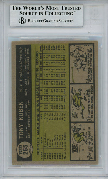 Tony Kubek Autographed 1961 Topps #265 Trading Card Beckett Slab 38487
