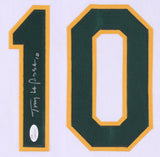 Custom on-field style jersey. Everything is sewn on, size XL. Hand-signed in silver paint pen by Tony La Russa (Chicago White Sox, Oakland A's, St. Louis Cardinals, HOF).The autograph includes an official James Spence Authentication (JSA) hologram and matching COA for authenticity purposes. The signing of this item was witnessed by JSA.Authentication: JSA COA