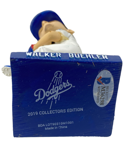 This 2019 collectors edition bobblehead has been personally hand-signed by Walker Buehler. It is officially licensed by the MLB and comes with an individually numbered, tamper-evident hologram from Beckett Authentic. To ensure authenticity, the hologram can be reviewed online. This process helps to ensure that the product purchased is authentic and eliminates any possibility of duplication or fraud.Includes tamper-evident hologram to ensure authenticityOfficially licensed This product is guaranteed authentic and includes a tamper-evident Beckett Hologram.