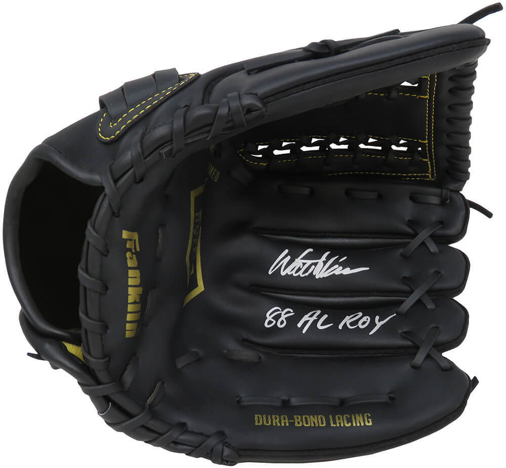 Walt Weiss Signed Franklin FlexMaster black baseball fielders glove with '88 AL ROY' inscription. Item comes with a Schwartz Sports Memorabilia tamper-proof numbered hologram and Certificate of Authenticity which can be verified online.