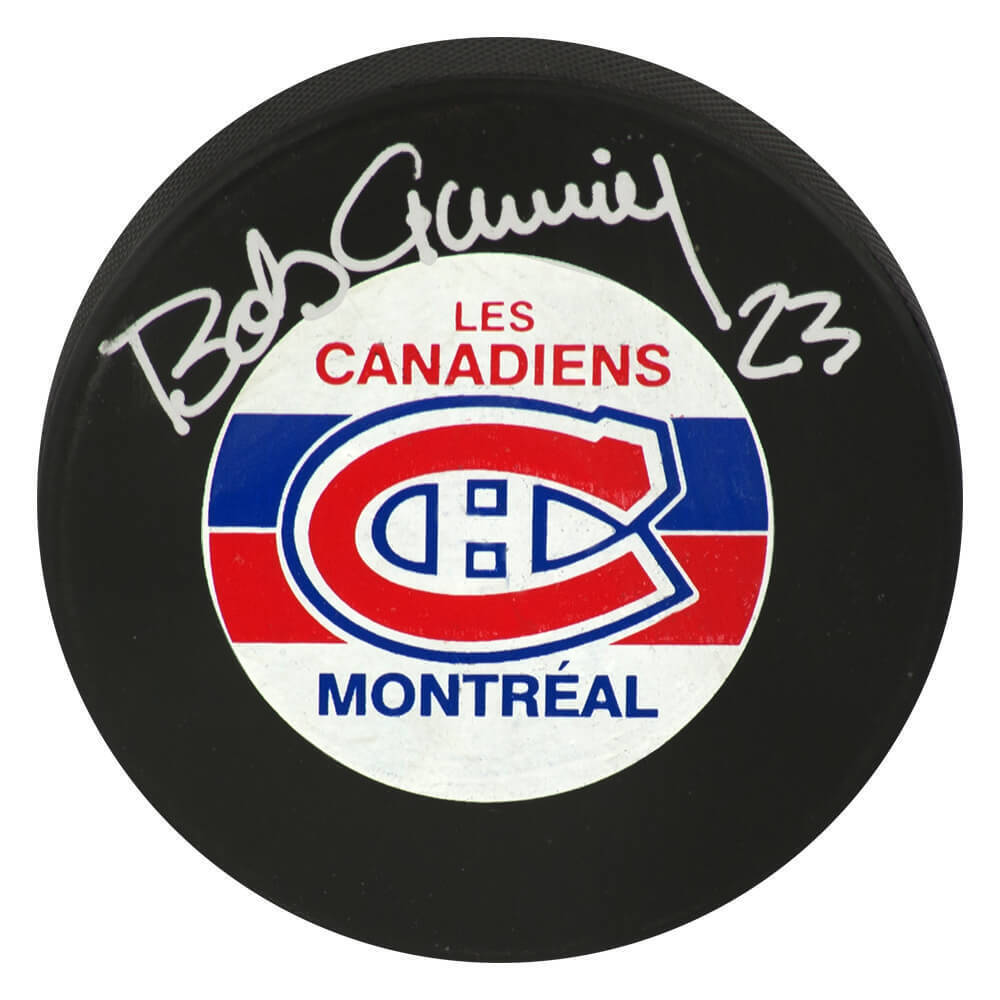 Bob Gainey signed Montreal Canadiens logo hockey puck. Item comes with a Schwartz Sports Memorabilia tamper-proof numbered hologram and Certificate of Authenticity which can be verified online.