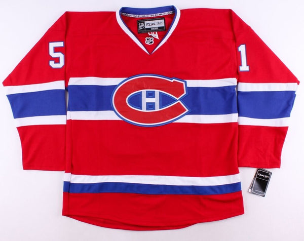 Reebok on-ice style jersey. Everything is sewn on, size 50. Hand-signed in black felt tip pen by David Desharnais The autograph includes an official Beckett Authentication Services serially numbered hologram and matching COA for authenticity purposes.Authentication: Beckett COA