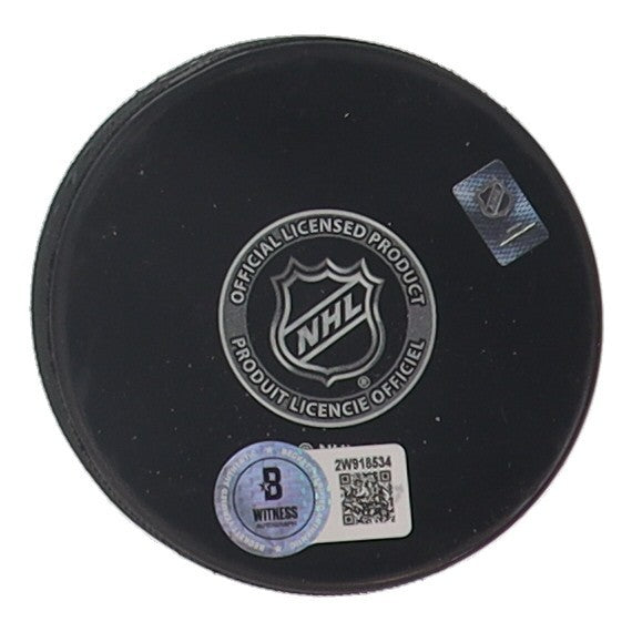 Montreal Canadiens logo hockey puck. Hand-signed by Serge Savard (HOF, Montreal Canadiens).The autograph includes an official Beckett Authentication Services serially numbered hologram and QR Code card for authenticity purposes. The signing of this item was witnessed by Beckett.Authentication: Beckett Hologram with QR Code card