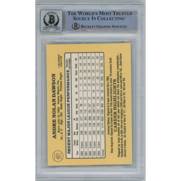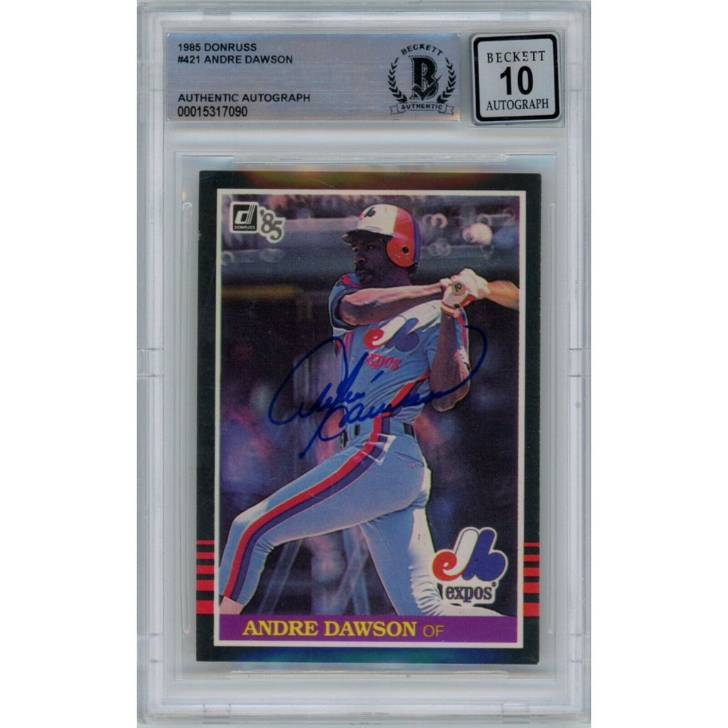 The number in the listing title is just an inventory sku for our records and is not the authentication number. The item pictured is the exact item you will receive, please see photos for condition. This is a 1987 Donruss #421 Slabbed Trading Card that was personally autographed by Andre Dawson. Includes a certificate of authenticity from Beckett Authentication Services (BAS) and Denver Autographs.