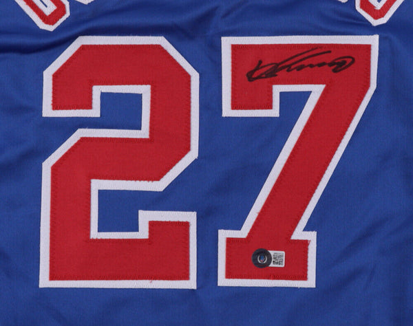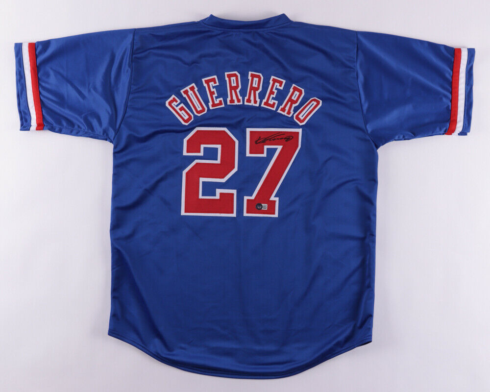 Custom on-field style jersey. Everything is sewn on, size XL. Hand-signed by Vladimir Guerrero Sr. (HOF).The lot / autograph(s) includes an official Beckett Authentication Services serially-numbered hologram for authenticity purposes. The signing of this item was witnessed by Beckett.Authentication: Beckett Hologram