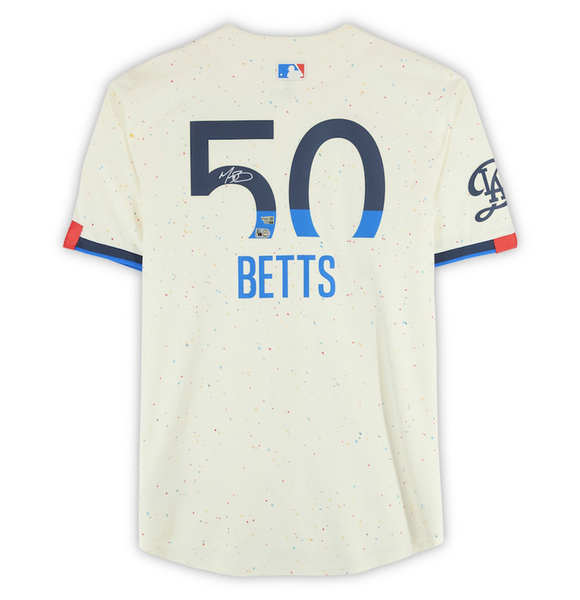 Mookie Betts Autographed Los Angeles Dodgers Alternate Nike City Connect Limited FanaticsThis jersey has been personally hand-signed by Mookie Betts. It has been obtained under the auspices of the Major League Baseball Authentication Program and can be verified by its numbered hologram at MLB.Com. It also comes with an individual numbered, tamper-evident hologram from Fanatics Authentic. This process helps to ensure that the product purchased is authentic and eliminates any possibility of duplication or fraud. Made in the USA Personally Autographed by Mookie Betts Fanatics Authentic Presented by Mounted Memories Includes tamper-evident hologram to ensure authenticity Officially licensed This product is guaranteed authentic and includes a Fanatics Certificate of Authenticity and an accompanying tamper-evident Fanatics Hologram.
