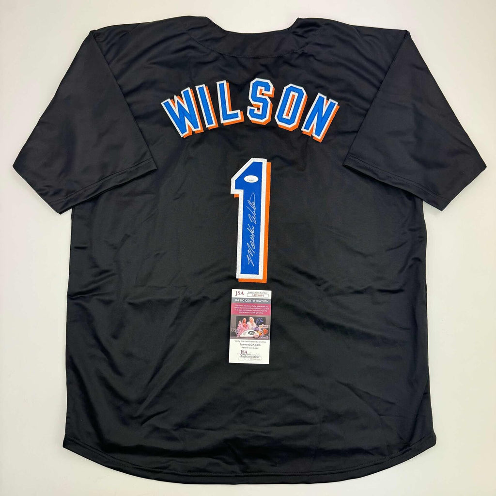 Autographed/Signed Mookie Wilson New York Black Baseball Jersey JSA COA Jersey has no brand names or logos. This is a custom jersey and was not manufactured by or in any manner associated with any professional sports league or manufacturer. This custom jersey carries no professional sports league designation. The item is intended to be an autographed collectible. The custom jersey displays the name and number of the player. This item in no way is affiliated with or connected to any professional sports organization. Size is XL