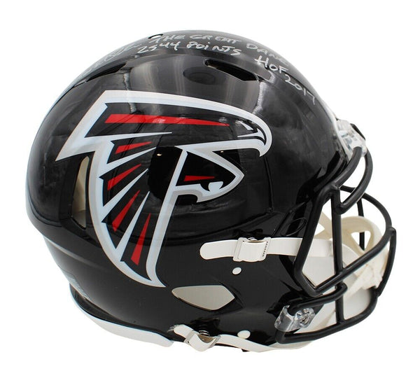 A Atlanta Falcons Speed Authentic 2003-2019 NFL Helmet hand signed by Morten Andersen. The item and signature are in excellent condition. In addition to signing his name, Morten also inscribed "HOF 2017, THE GREAT DANE, 2544 Points" on the item. Morten was drafted into the NFL 1982 Round:4, Pick:86. Morten is a 2x Golden Toe Award winner, a 7x Pro Bowler, 5x First-team All-Pro, and Morten is in the New Orleans Hall of Fame. AUTHENTICATION: The item is accompanied by a Morten Andersen Exclusive Certificate of Authenticity - Morten Andersen Exclusive Serial Numbered and Databased Hologram - Picture of Morten from the signing