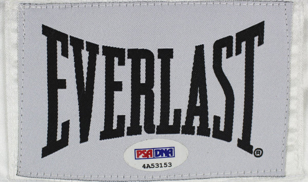 This Autographed White Everlast Robe has been Personally Signed by Muhammad Ali. This item is 100% Authentic and comes with a PSA/DNA Certification Card and a matching numbered Hologram. This is a PSA in the Presence Authenticated item which means a PSA representative was present when this item was being signed. The authenticity can be verified on Professional Sports Authenticator website.