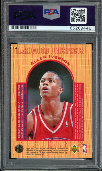 1996 Upper Deck UD3 #14 Allen Iverson RC Rookie On Card PSA/DNA Auto GEM MINT 10