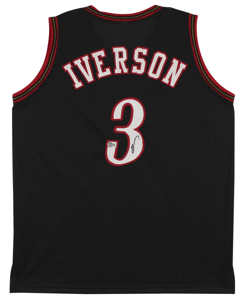 This Autographed Black Pro Style Jersey has been Personally Signed by Allen Iverson of the Philadelphia 76ers. This item is 100% Authentic to include a hologram by Beckett Authentication Services. This item will come with an affixed Beckett Authentication Services (BAS) authentication sticker, which includes a scannable QR code to verify authenticity. Please note that Beckett no longer provides serial-numbered COA cards, and the attached BAS sticker will serve as the complete authentication for this item. We have multiples of this same item. While the photographs are representative of this item, the size, placement and strength of the signature may vary. Each item is hand signed, therefore, each autograph is unique. This is a X-Large sized, non-branded, custom-stitched Jersey.