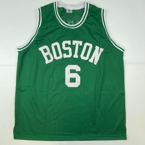 Autographed/Signed Bill Russell Boston Green Jersey Hollywood Collectibles COA Jersey has no brand names or logos. This is a custom jersey and was not manufactured by or in any manner associated with any professional sports league or manufacturer. This custom jersey carries no professional sports league designation. The item is intended to be an autographed collectible. The custom jersey displays the name and number of the player. This item in no way is affiliated with or connected to any professional sports organization. Size is XL.