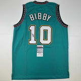 Autographed/Signed Mike Bibby Vancouver Teal Retro Basketball Jersey JSA COA Jersey has no brand names or logos. This is a custom jersey and was not manufactured by or in any manner associated with any professional sports league or manufacturer. This custom jersey carries no professional sports league designation. The item is intended to be an autographed collectible. The custom jersey displays the name and number of the player. This item in no way is affiliated with or connected to any professional sports organization. Size is XL.