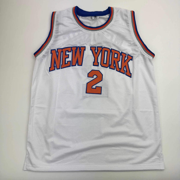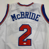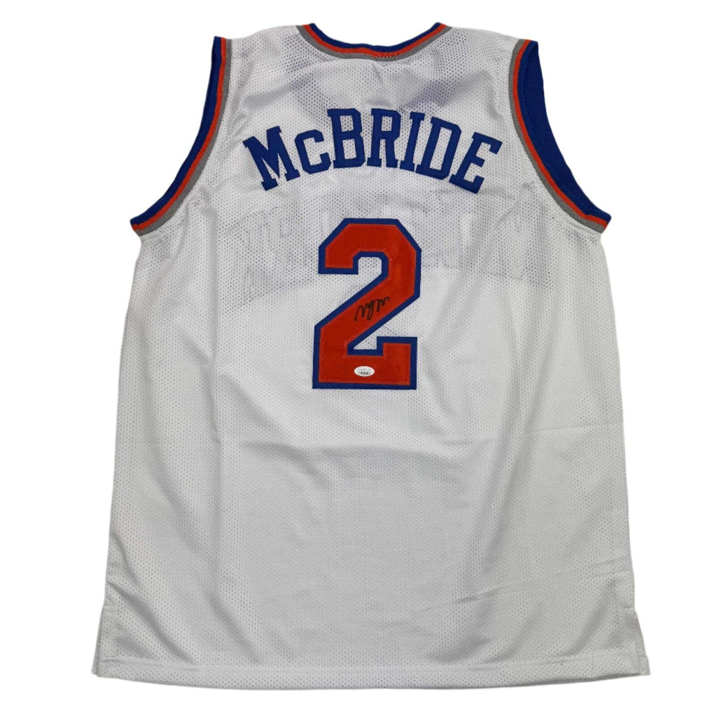 Autographed/Signed Miles Deuce McBride New York White Basketball Jersey JSA COA Jersey has no brand names or logos. This is a custom jersey and was not manufactured by or in any manner associated with any professional sports league or manufacturer. This custom jersey carries no professional sports league designation. The item is intended to be an autographed collectible. The custom jersey displays the name and number of the player. This item in no way is affiliated with or connected to any professional sports organization. Size is XL.