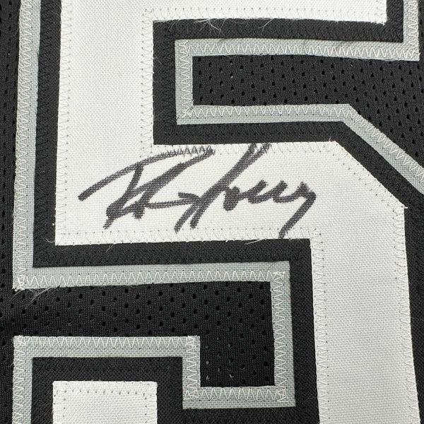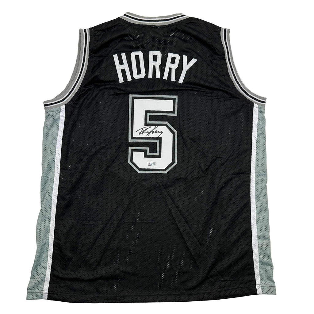 Autographed/Signed Robert Horry San Antonio Black Jersey Beckett BAS COA Jersey has no brand names or logos. This is a custom jersey and was not manufactured by or in any manner associated with any professional sports league or manufacturer. This custom jersey carries no professional sports league designation. The item is intended to be an autographed collectible. The custom jersey displays the name and number of the player. This item in no way is affiliated with or connected to any professional sports organization. Size is XL.