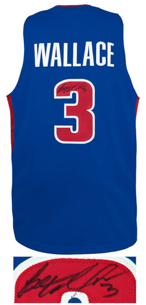 Ben Wallace signed blue custom basketball jersey. Item comes with a Schwartz Sports Memorabilia tamper-proof numbered hologram and Certificate of Authenticity which can be verified online. Jersey is size XL.