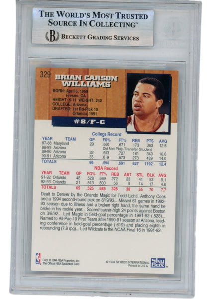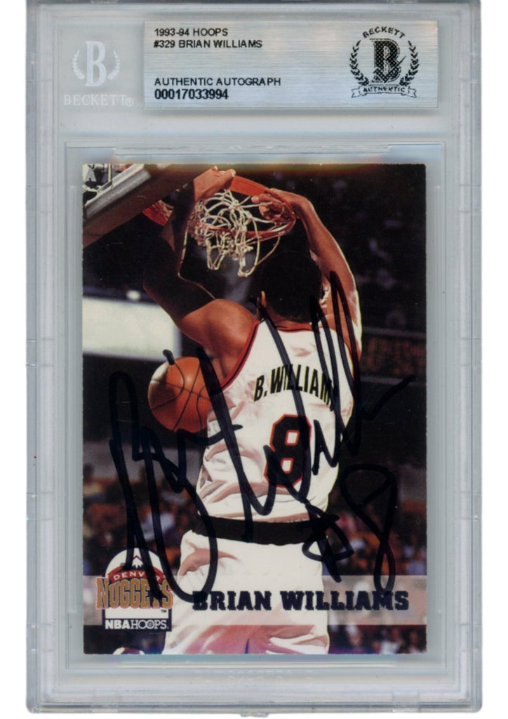 The number in the listing title is just an inventory sku for our records and is not the authentication number. The item pictured is the exact image you will receive, please see photos for condition. This is an Orlando Magic 1993-1994 Hoops #329 Slabbed Trading Card that was personally autographed by Brian Williams. Includes a certificate of authenticity from Beckett Authentication Services (BAS) and Denver Autographs. FREE SHIPPING within the USA on orders over $10!